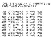 | 7.22・23 | 8.4~6 | 8.26~28 | 9.9~11 | 9.29~10.3 | ||